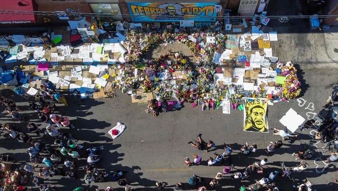 The demonstrations, near of them peaceful, were sparked by the killing of George Floyd past a Minneapolis police officer who knelt on his neck for viii minutes 46 seconds equally the African American man pleaded, "I can't breathe."